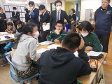 R7年度【学校生活】 6年社会 【更新日】2025年11月28日 6年社会科で「江戸時代は平和だったのだろうか」というテーマで話合いを行いました。 この日は長崎市内の先生方が20名近く集まり、6年生の話合いの様子を参観しました。 緊張の中でしたが、子どもたちは素晴らしかったです。 幕府、大名、百姓、町人、それぞれの立場に立ち、根拠をもって、自分の考えを伝えていました。 また、それぞれの考えを聞き合い、みんなで意思決定をしていました。 難しい内容でしたが、よい学びの1時間でした。