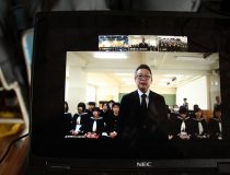第1部では、京都市立京都御池中学校と南相馬市立小高中学校とをリモート回線で結んで、「3校合同交流会」を開催しました。