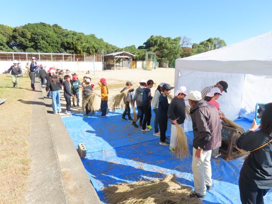 6/20(金)田植え、10/7(火)稲刈りに続いて、脱穀を行いました。