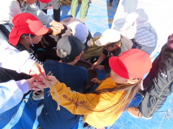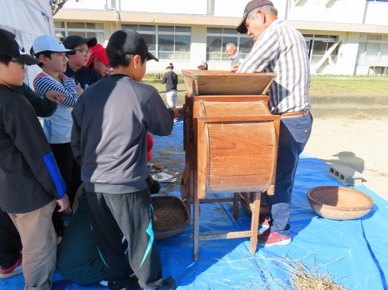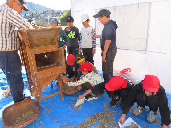 6月の田植えからこの脱穀までの4か月間の稲を育てる苦労も想像することができた4年生でした。
