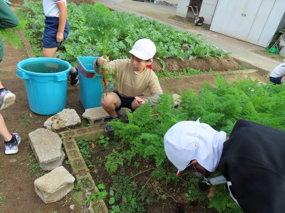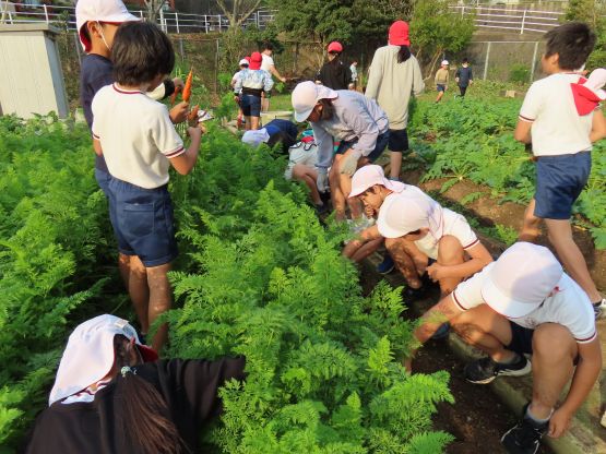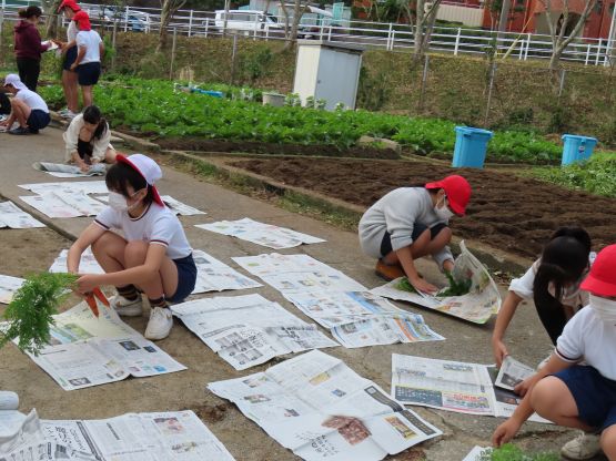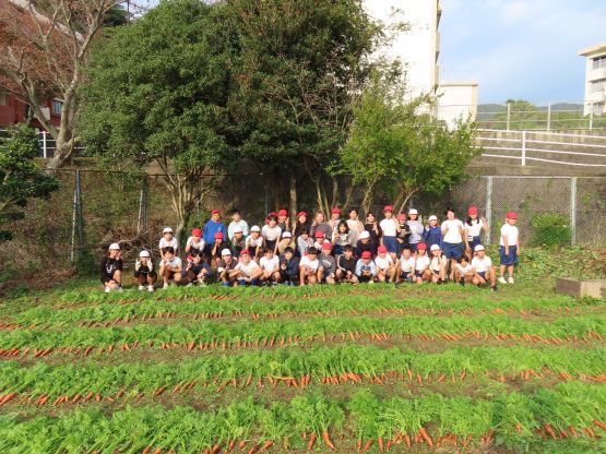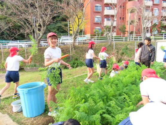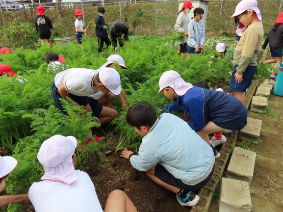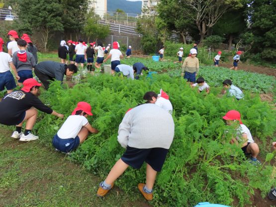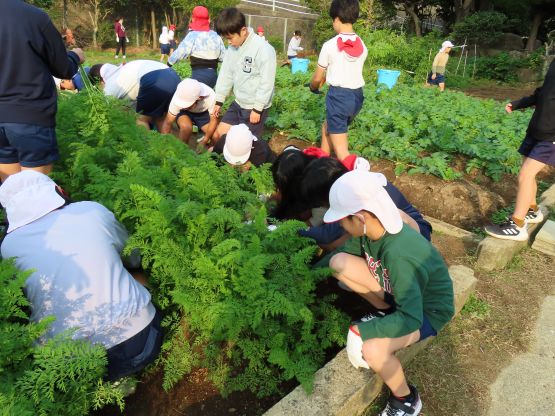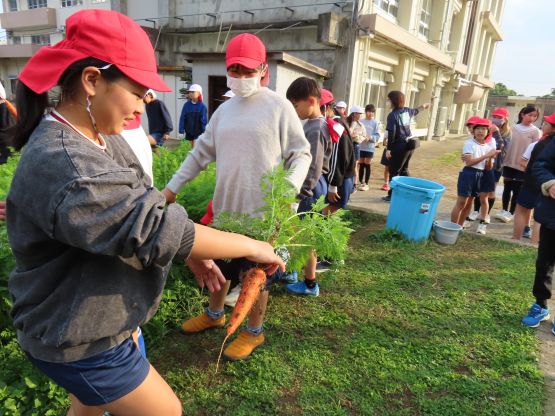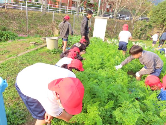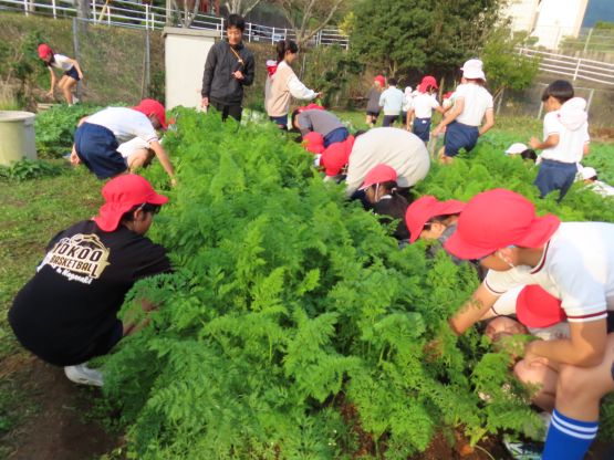 11/21(金)朝からの「走れ走れ」を終えた5年生が黒田五寸人参の収穫を行いました。