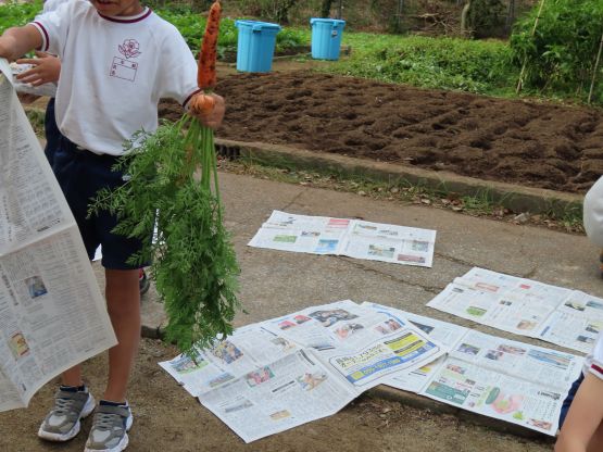 この日は、自分たちで収穫しました。次々に土の中から大きな人参が出てきました。