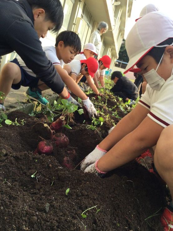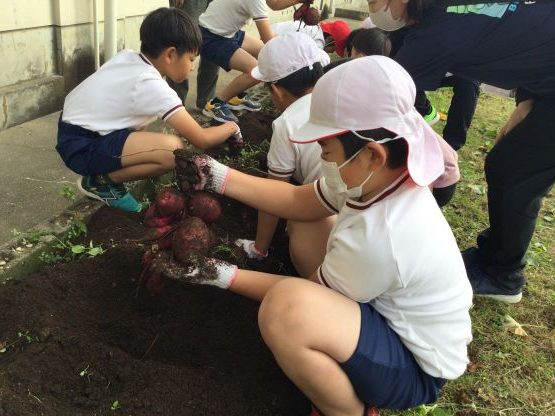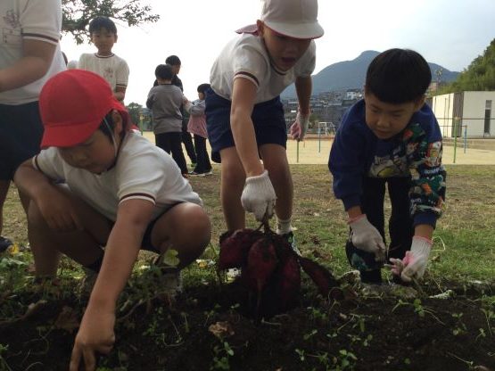 雑草抜きなどお世話を頑張りました。次々に掘り出される芋に笑顔がいっぱい広がりました。