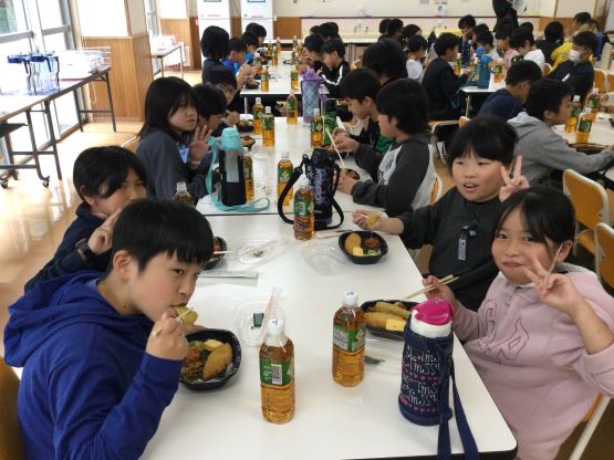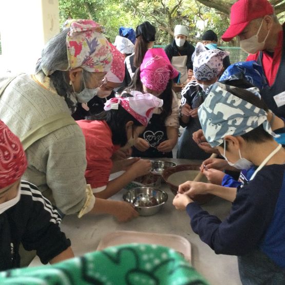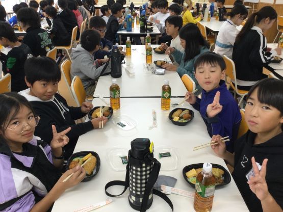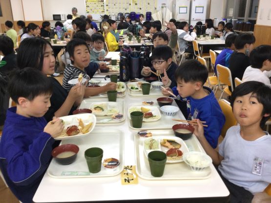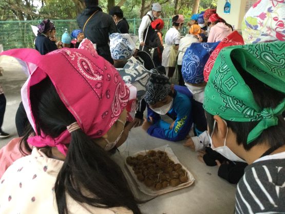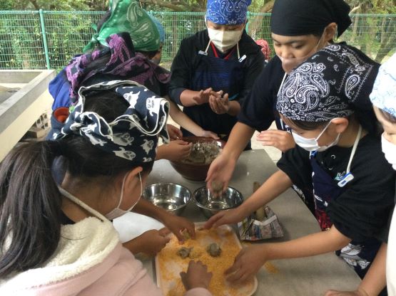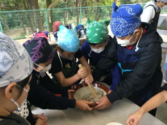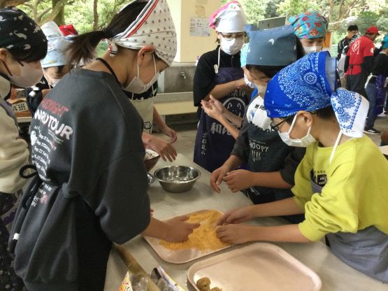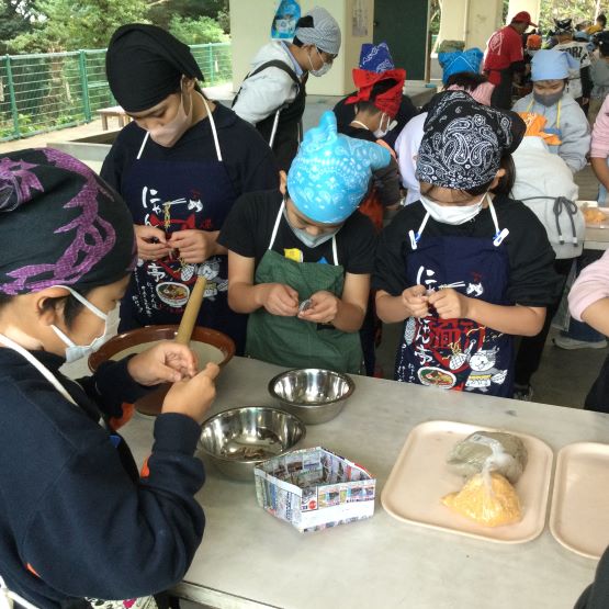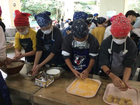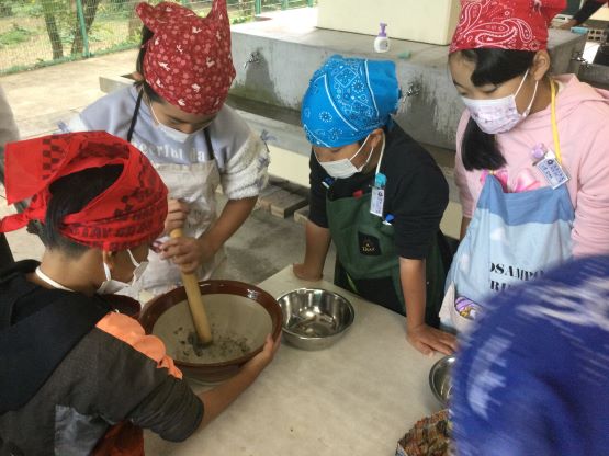 そして、日吉自然の家へ。食堂で弁当を食べてから入所式・オリエンテーションを終え、最初の活動「すり身体験」