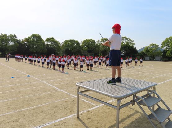 この日は、閉会式の練習を行いました。整理運動、成績発表、表彰、校歌斉唱、国旗、市旗、校旗降納、