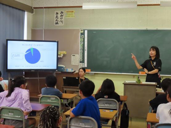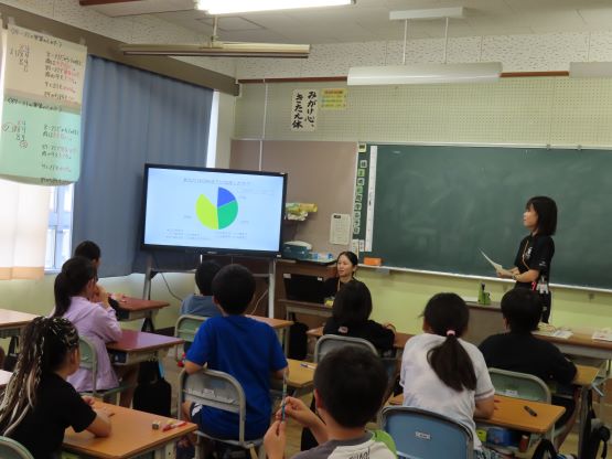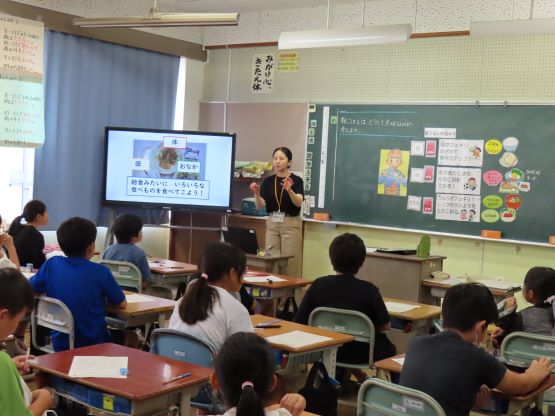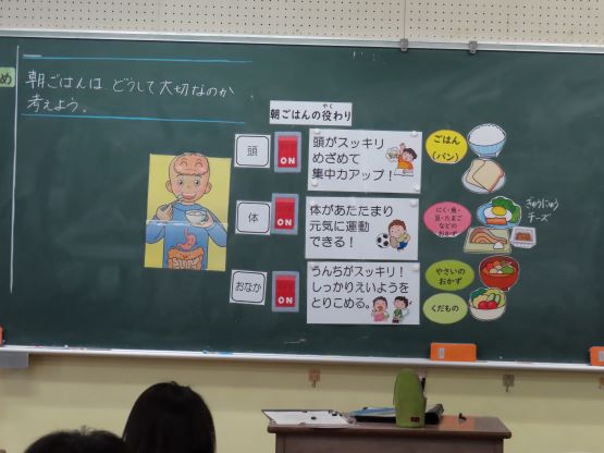 栄養教諭と4年生担任のTT(Team Teaching)で「朝ごはんはどうして大切なのか」ということについて