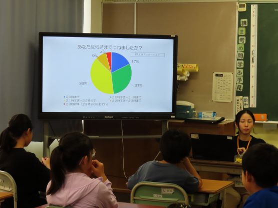 まずは、「はやね、はやおき、朝ごはん」に係るアンケートから学級の実態を捉え、学級の朝ごはんの