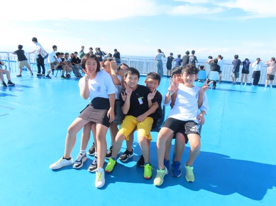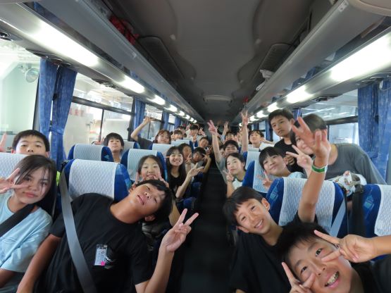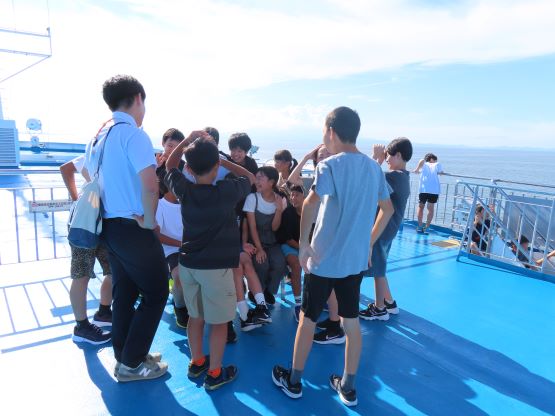 最後に集合したときは、さすがに疲れの表情が見られましたが、担任の先生の声掛けもあり、長洲港までのバスの中