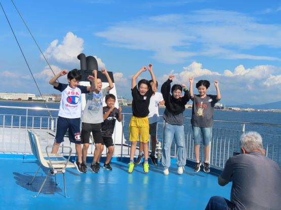 三角港から多比良港までの50分の船旅も、子供たちにはとても新鮮で、デッキや客室を使って思い思いに過ごすことが