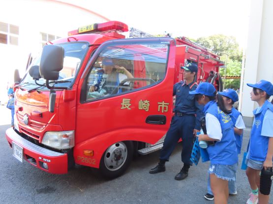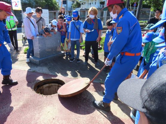 参加した子供たちは、初めて目にするものや体験することを前にして、興味津々で消防団員の方の