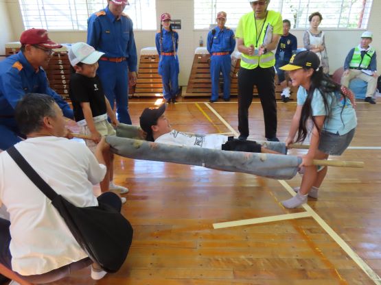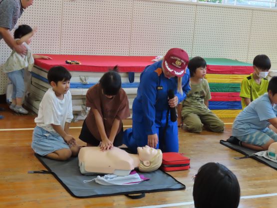 小中学生を対象とした「わくわく消防探検隊」と全住民の方を対象とした「防災訓練」の2部構成