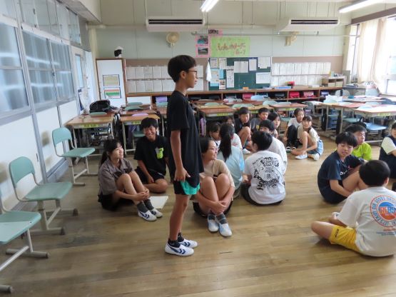 最後は、各班で修学旅行の一番の思い出について話し合い、それぞれの班の発表を聞いて到着式を終え