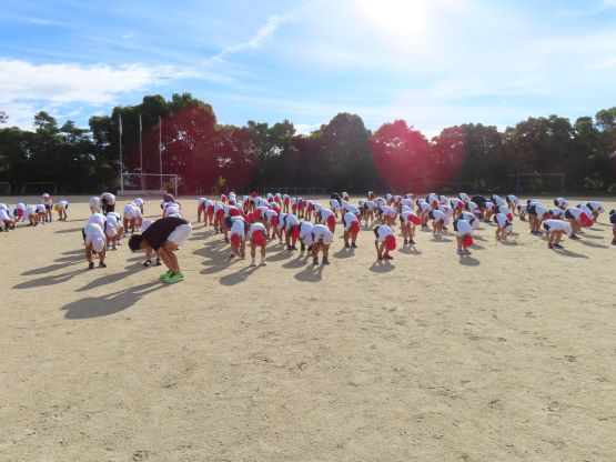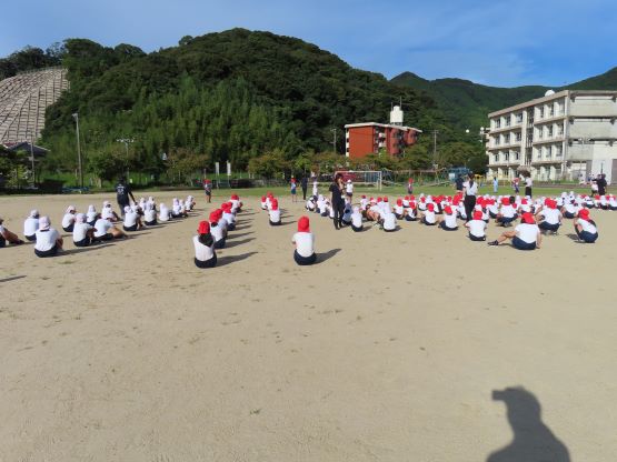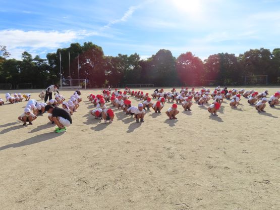 久しぶりに全校で運動場に集まり、健康観察、準備運動からしっかりと行いました。夏休み前